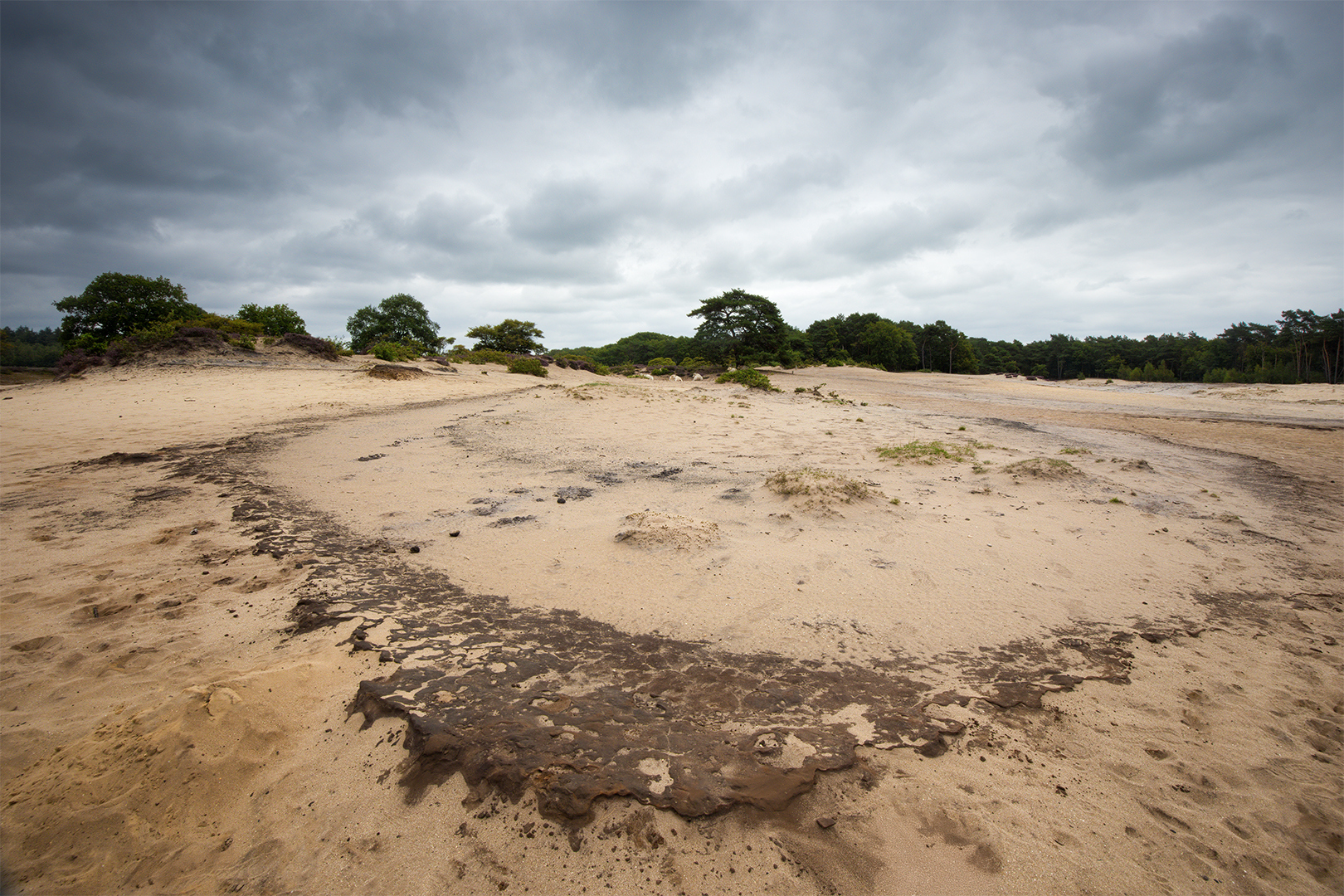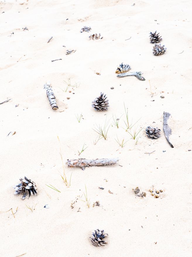 Dit tafereeltje trof ik zo aan in het zand bij de zandverstuiving van de Zuiderheide, had zelf alles niet mooier kunnen rangschikken. Vind het wel een mooi motief voor een dekbedovertrek! Tja, eigenlijk had ik ook hier netjes mijn zojuist geleerde stack-scherpsteltechniek moeten toepassen om alles scherp te krijgen, maar na de hele dag braaf werken met statief, was ik het laatste uurtje even lekker aan 't freewheelen. 't Moet kunnen...