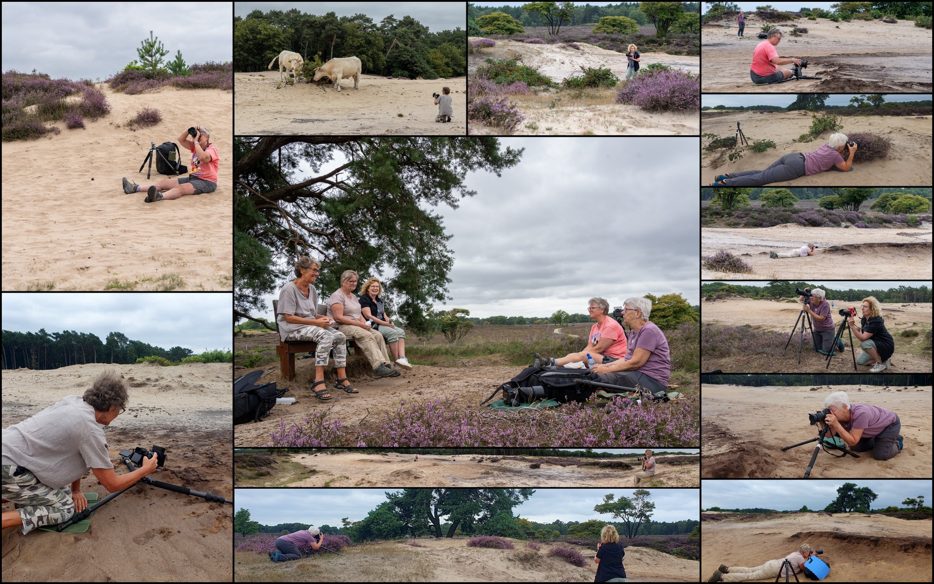 Traditiegetrouw gingen we op zaterdag 16 augustus weer naar de fotogenieke Zuiderheide. Na helaas wat afzeggingen wat het aantal deelnemers klein, maar dat mocht de pret niet drukken. Heide en zandverstuiving met fijne wolkenluchten nodigden uit tot heerlijk fotograferen en gezellige gesprekken. Geniet met ons mee van deze geslaagde dag!