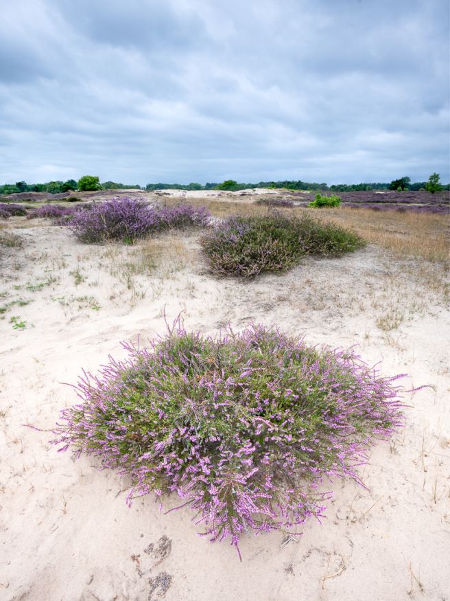 We hadden weer een heerlijke fotodag op de mooie Zuiderheide. Een echt mooi paars tapijt was er niet, maar op en bij de zandverstuiving bloeiden wel prachtige solitaire pollen. Hiervoor de groothoek ingezet en voor het eerst ben ik gisteren bezig geweest met focus bracketing teneinde alles scherp te krijgen. Wanneer je er dicht op kruipt lukt dat namelijk vaak niet. Lekker van alles proberen en uittesten. Ik weet niets van PS, doe altijd alles in LR, maar 't is me gelukt om een stack van drie verschillend scherpgestelde beelden in PS samen te voegen. Leuk, weer nieuwe dingen geleerd!