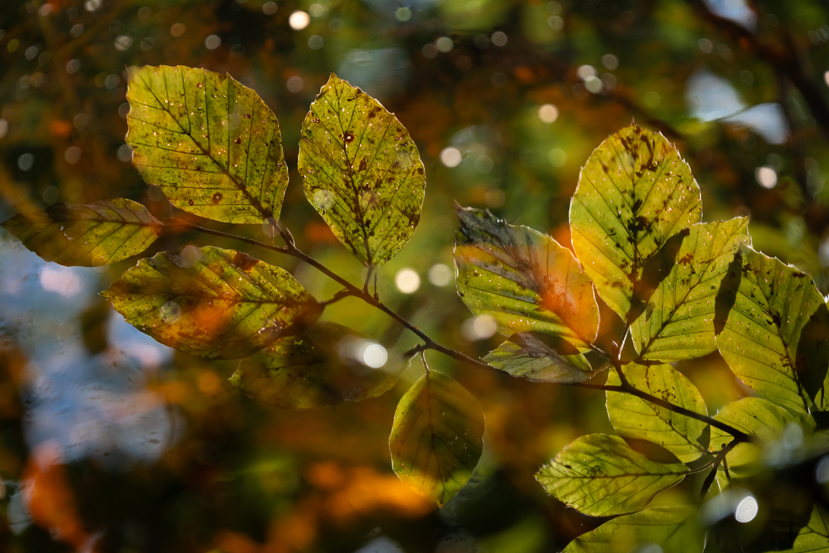 Een foto van reflecties die ik heb onderbelicht. In de nabewerking heb ik de hooglichten weer opgehaald om het blad beter te laten uitkomen.
