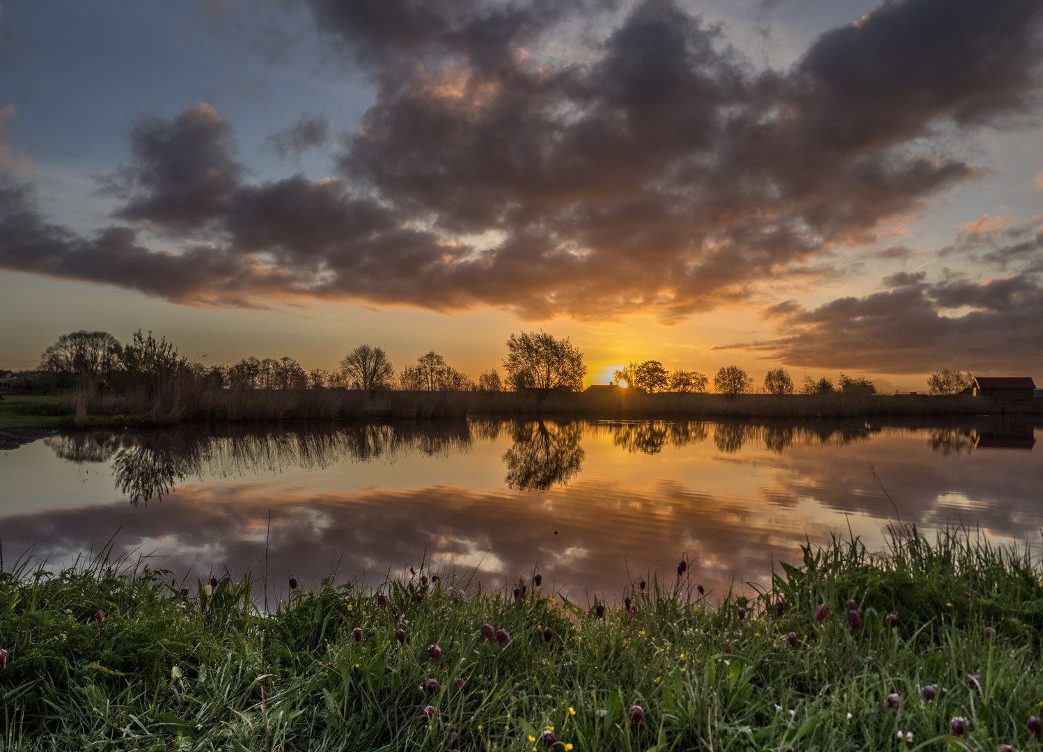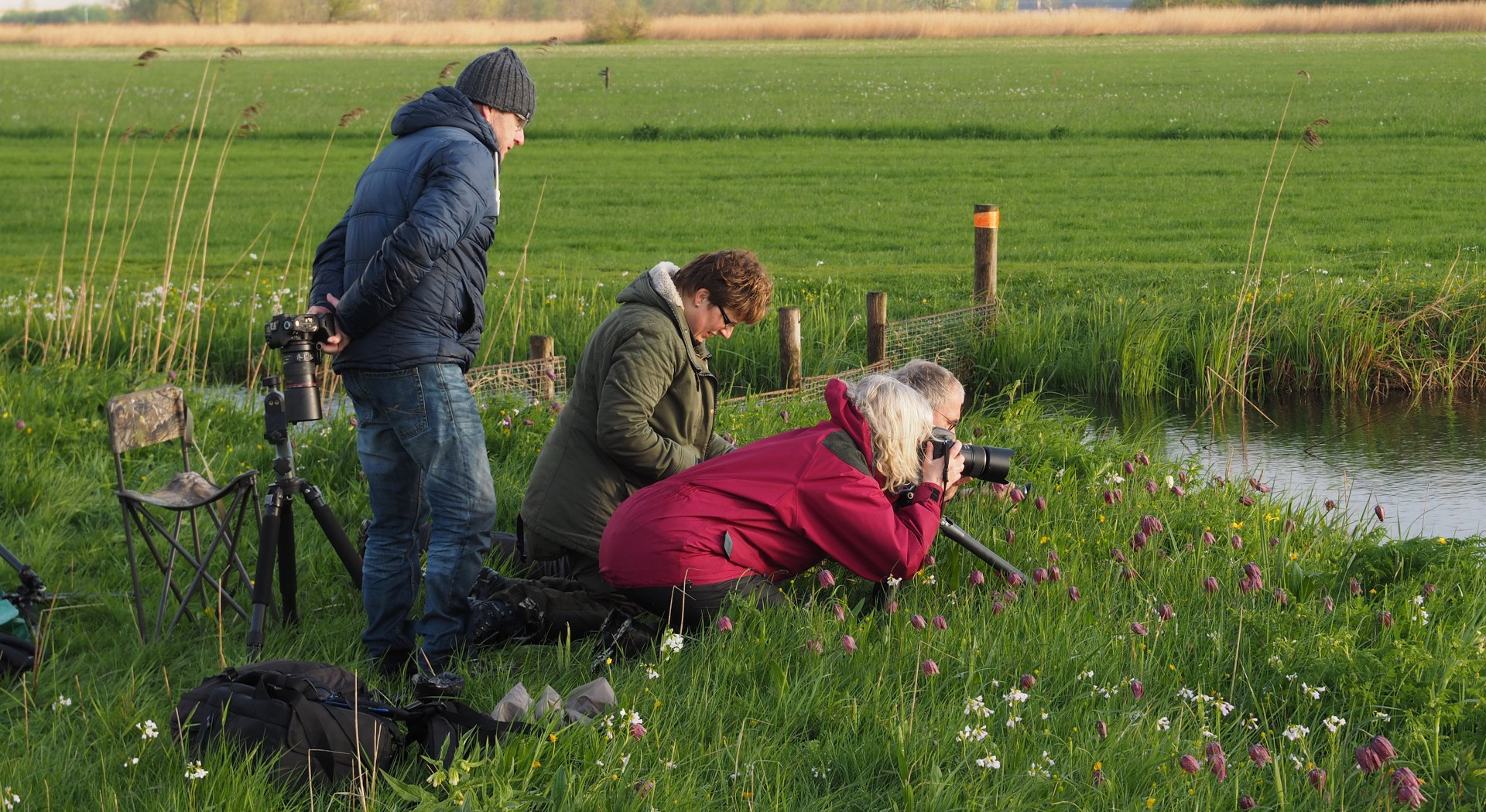 Twee dagen kievitsbloemen fotograferen; begon de eerste dag met regen en stond er een harde en onaangename wind, de tweede dag zat alles echt mee. Prachtige zonsopkomst en vrijwel windstil weer. Vanwege het grote aantal deelnemers en het kwetsbare gebied heb ik het fotograferen van de kievitsbloemen moeten verdelen over twee dagen. Ondanks het minder goede weer gedurende de eerste dag gingen de deelnemers beide dagen enthousiast aan de slag en zag je overal verspreid de fotografen op hun buik in het natte gras liggen.