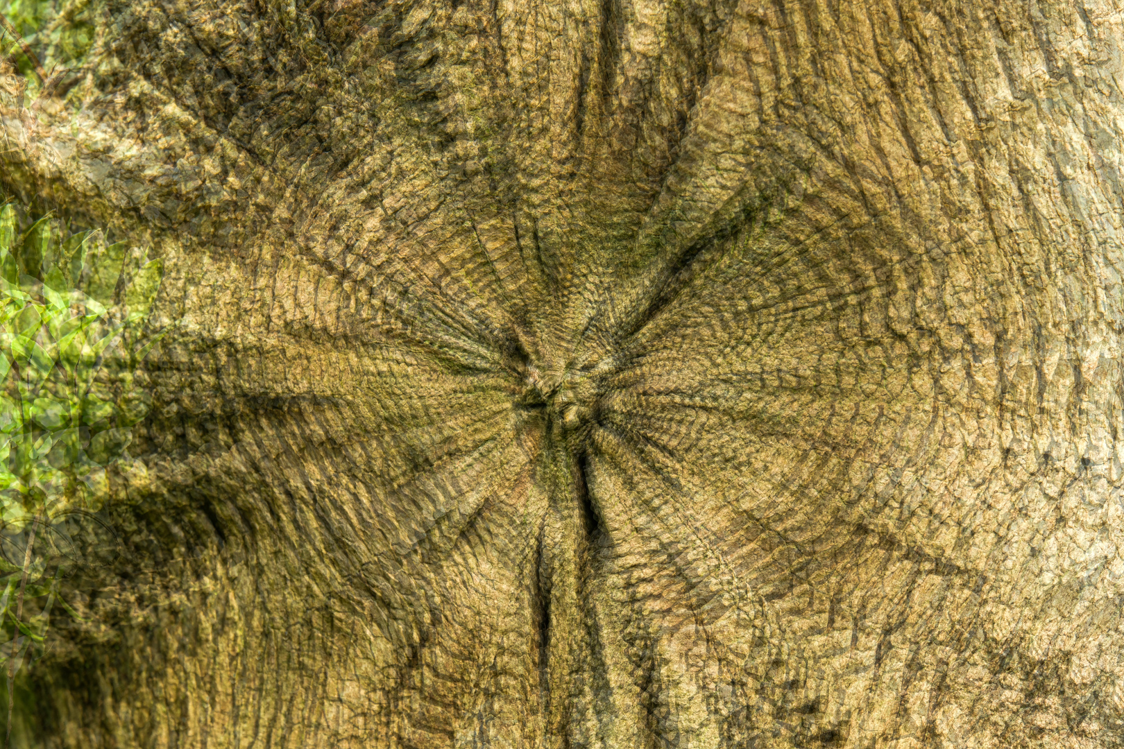 Een stukje stukje boomschors, hier met meervoudige belichting in de camera, 5 opnames en bij elke opname een klein beetje verder uitgezoomd. In de nabewerking contrast en textuur wat verhoogd.