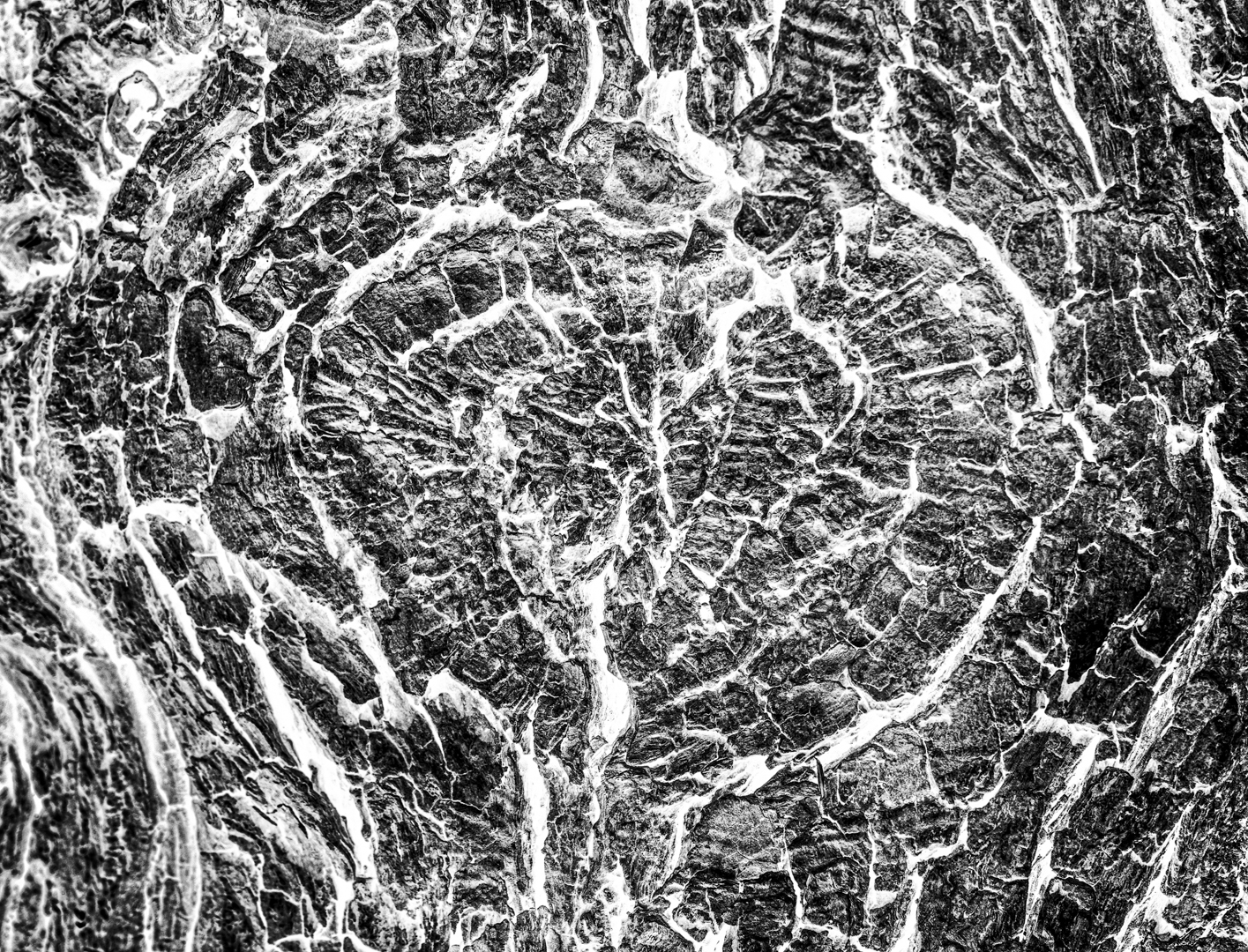 De workshop "50 tinten groen" was zeer gevarieerd, en maakte goed gebruik van de verschillende mogelijkheden van de locatie. Landschap, intieme landschappen, details, creatieve technieken, tips voor de nabewerking, het was voor sommige deelnemers voor wie alles nieuw was, misschien wel te veel. Maar gelukkig kan je altijd zelf je keuzes daarin maken. Bij deze foto heb ik een stukje boomschors gefotografeerd, omgezet in zwart-wit en inversie toegepast.