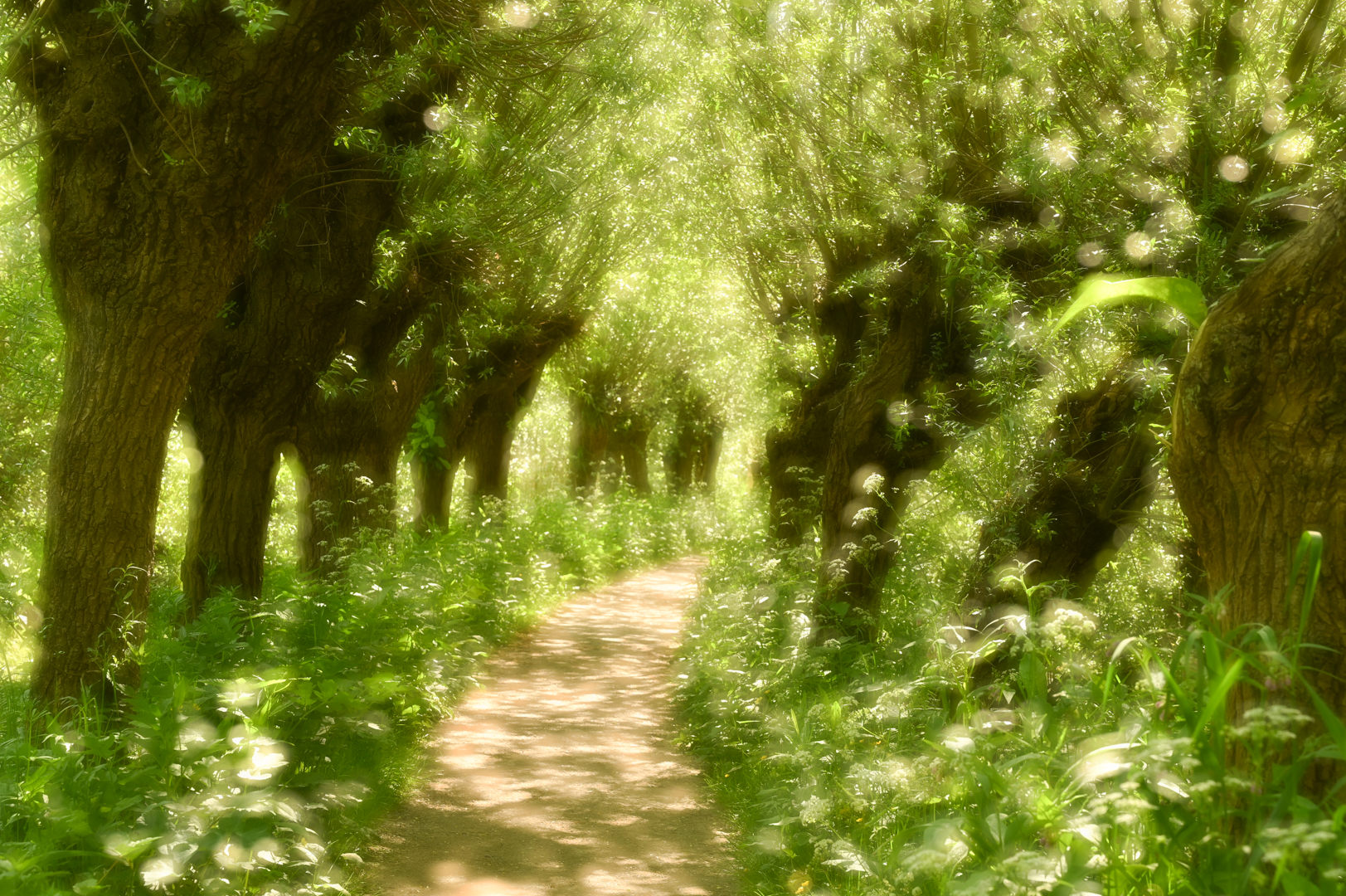 Tijdens de workshop 50 tinten groen ook op dit smalle wandelpad bezig geweest. Foto's gemaakt met het Orton effect, maar daar ben ik niet tevreden over. Maar deze wel gewoon, was een uitdaging met het felle zonlicht die er door kwam. Hier ging het mij ook om de juiste compositie te vinden.