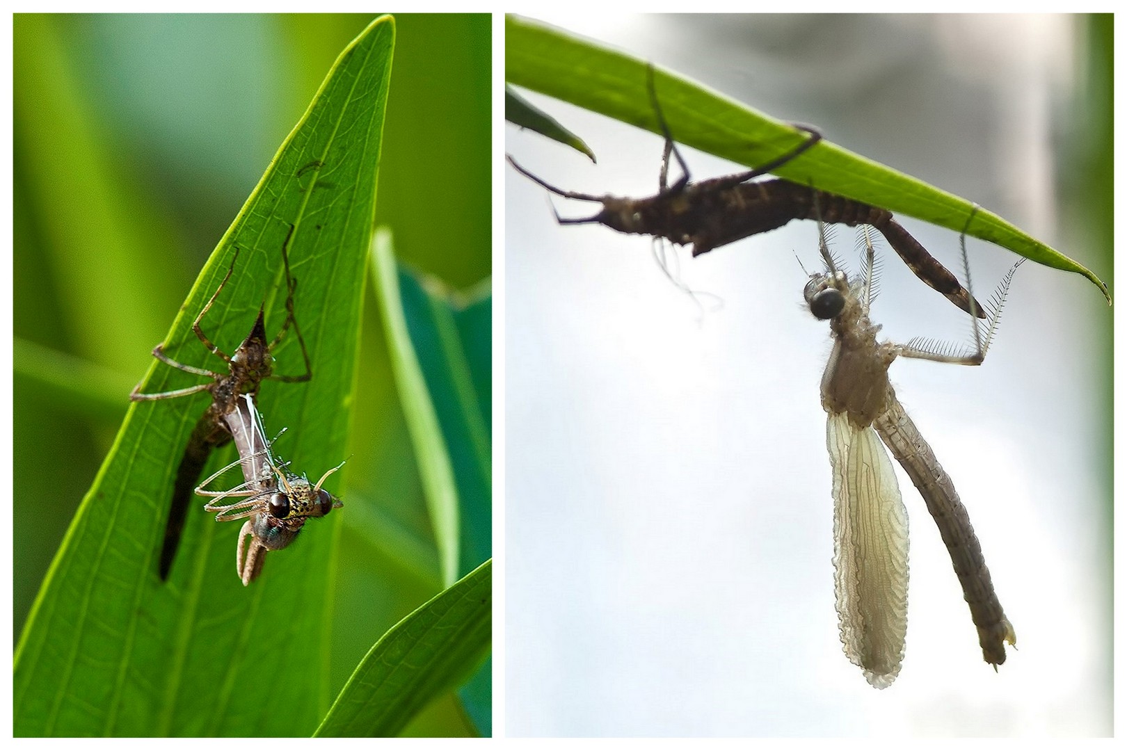 Na het uitsluipen ontwikkelt zich het lichaam en worden de vleugels opgepompt tot ze hun uiteindelijke lengte bereiken. En nog later worden de vleugels op kleur gebracht. Dit hele proces duurt enkele uren.